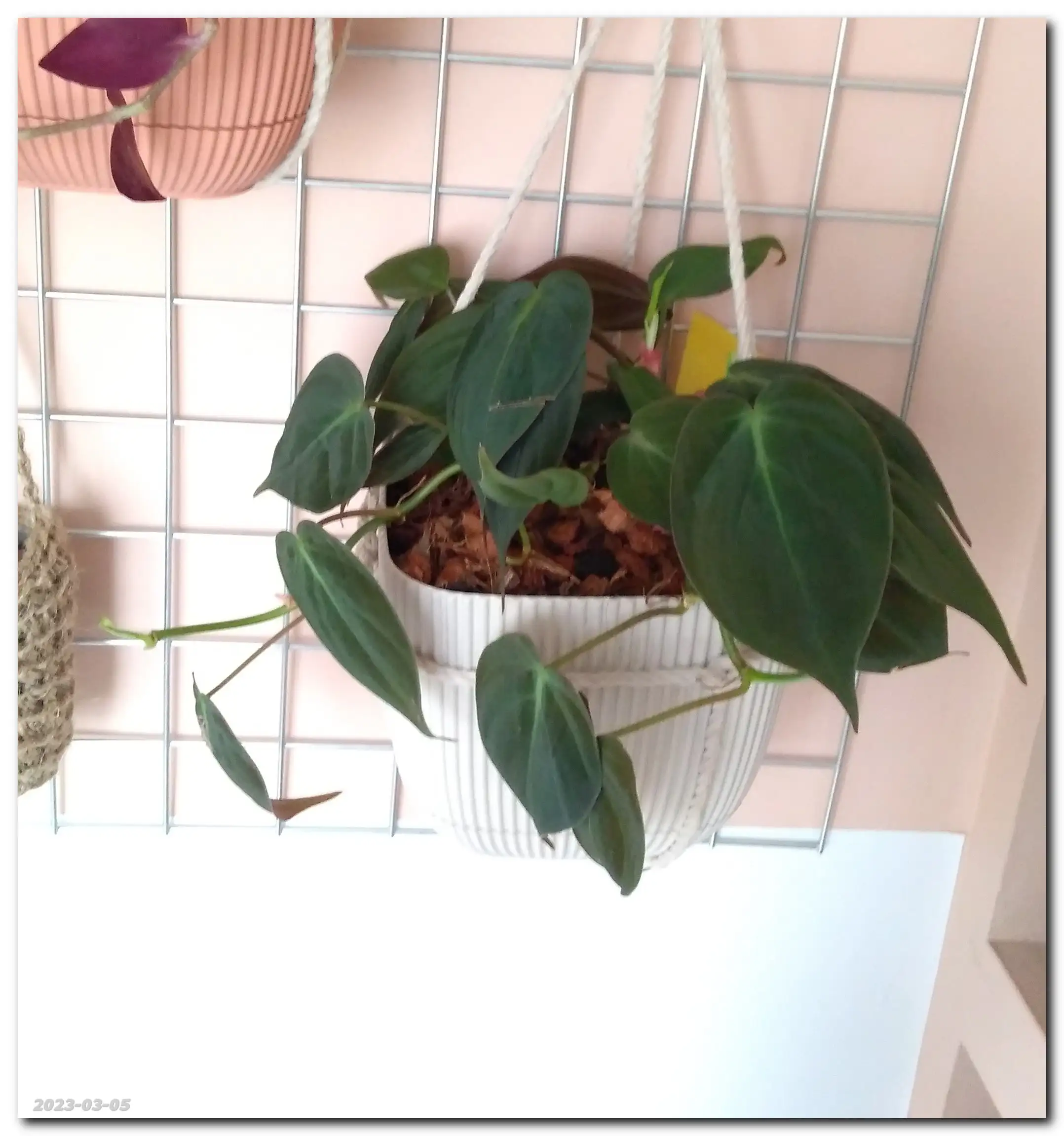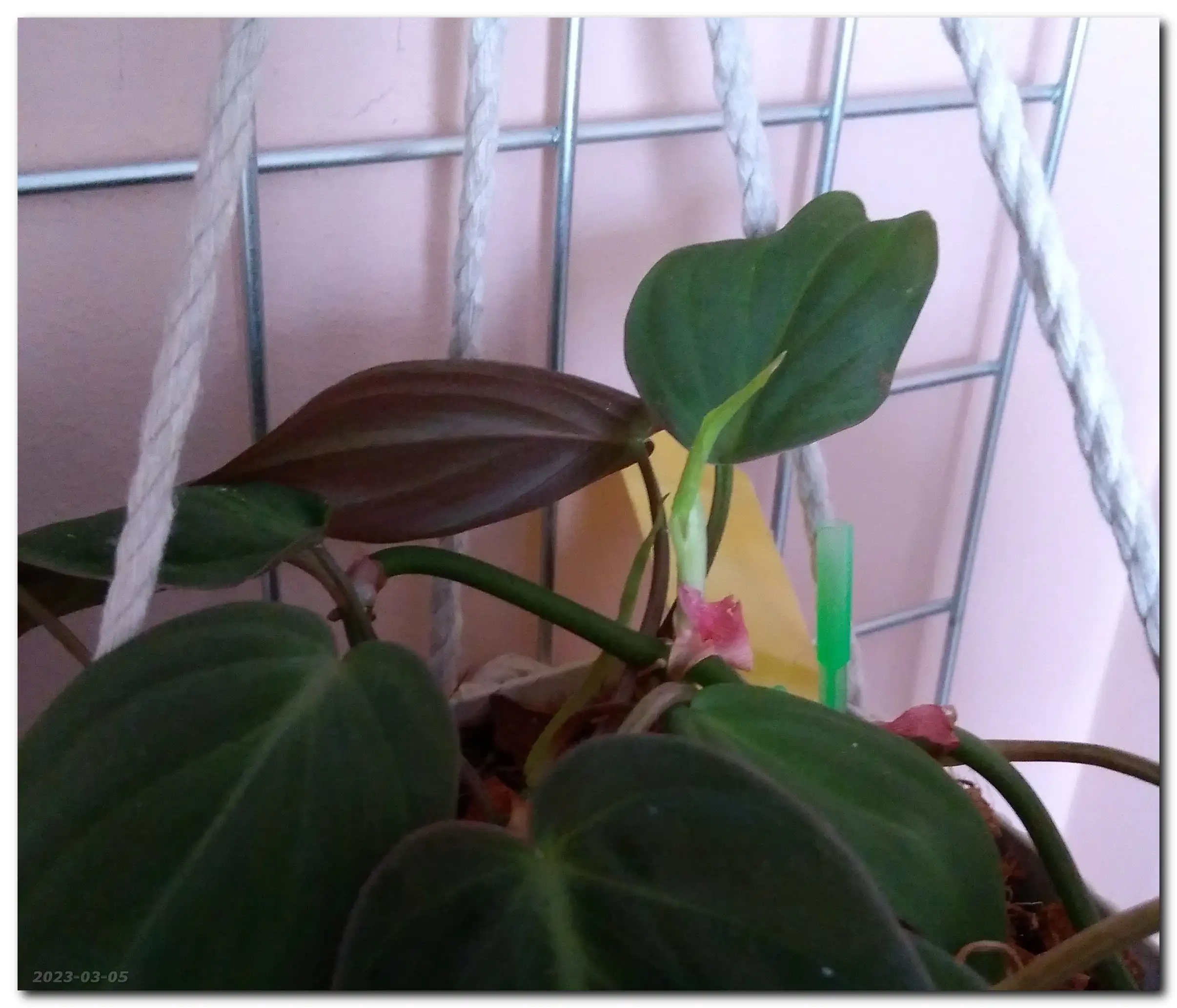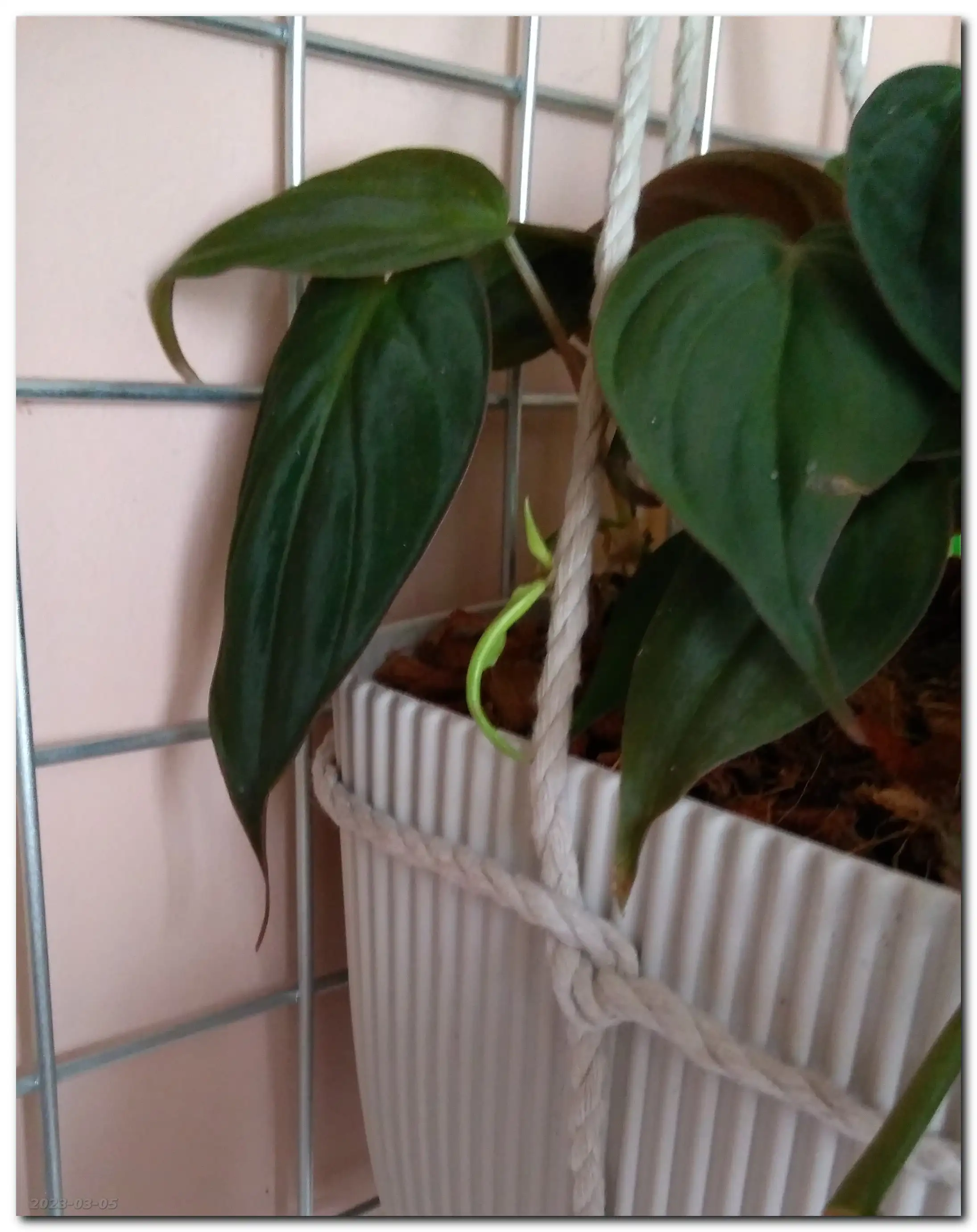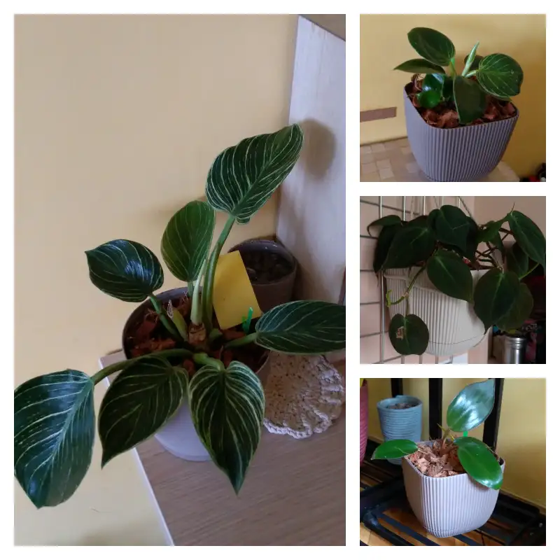 Hmmm... Miki (Philodendron Scandens Micans) puszcza dużo nowych liści. Roho (Philodendron Rojo Congo) i Miluś Junior (Philodendron Birkin) ociągają się z rozwinięciem nowych liści, a Miluś (Philodendron Birkin) rozbudował korzenie i próbuje wypuścić nowe liście.
