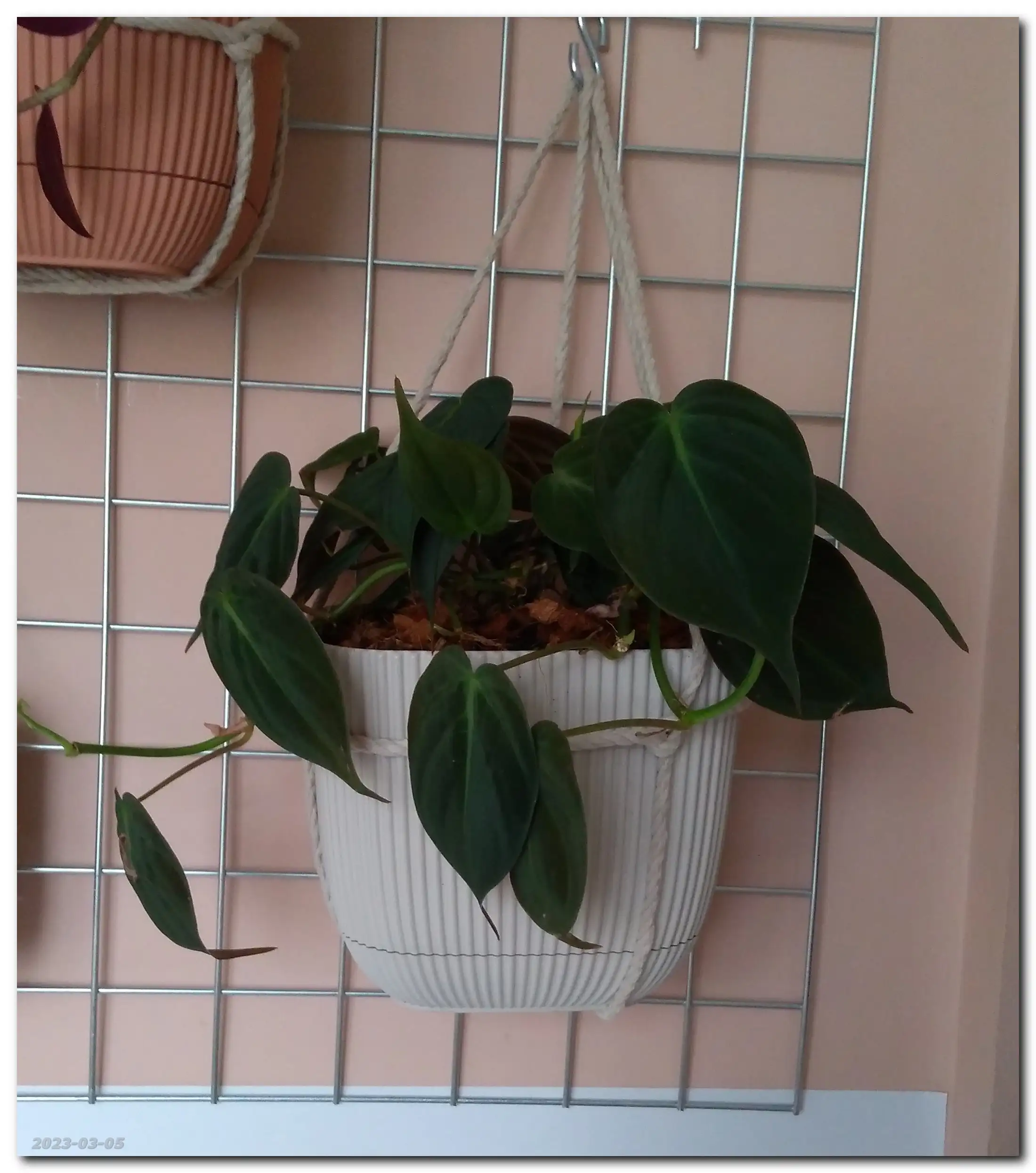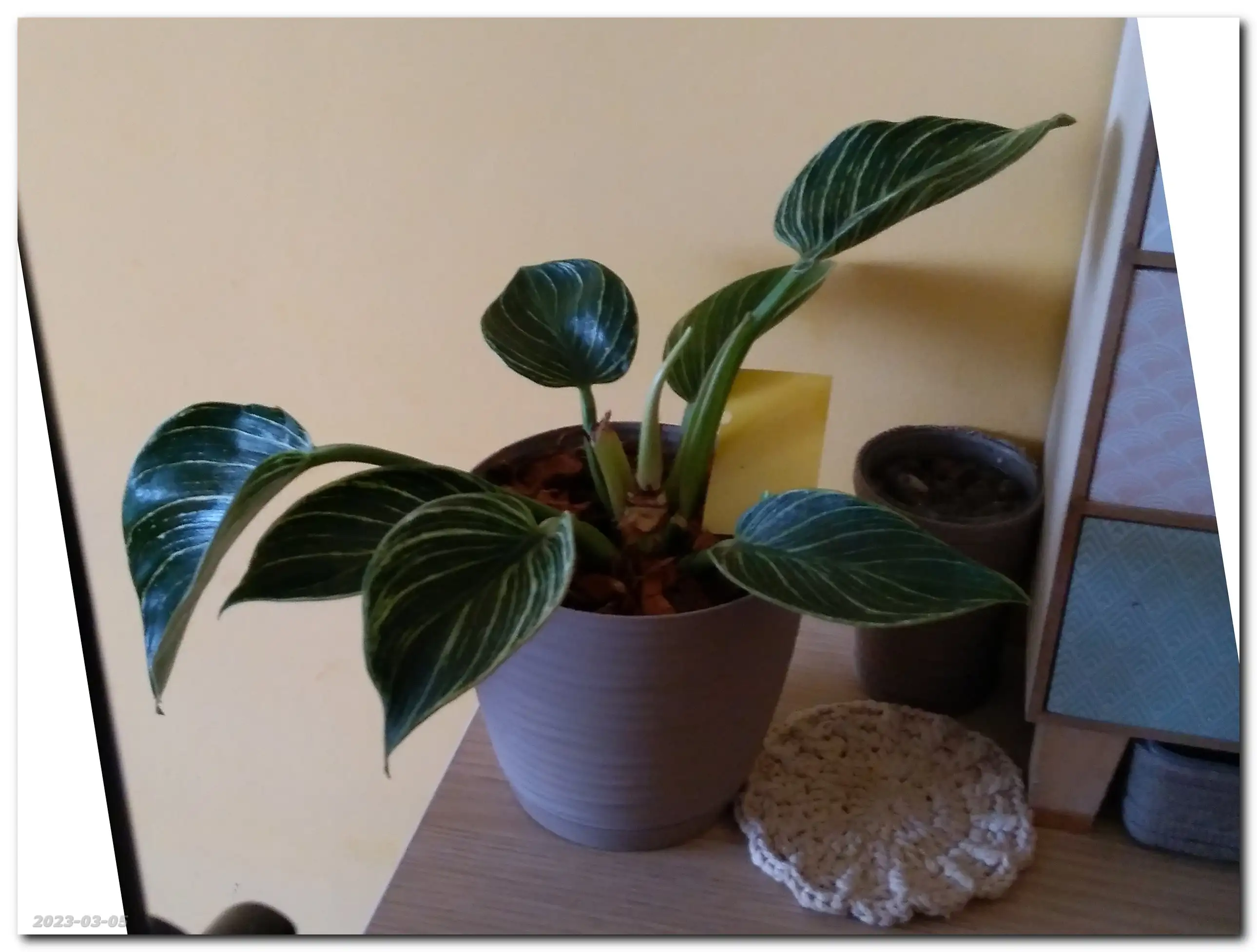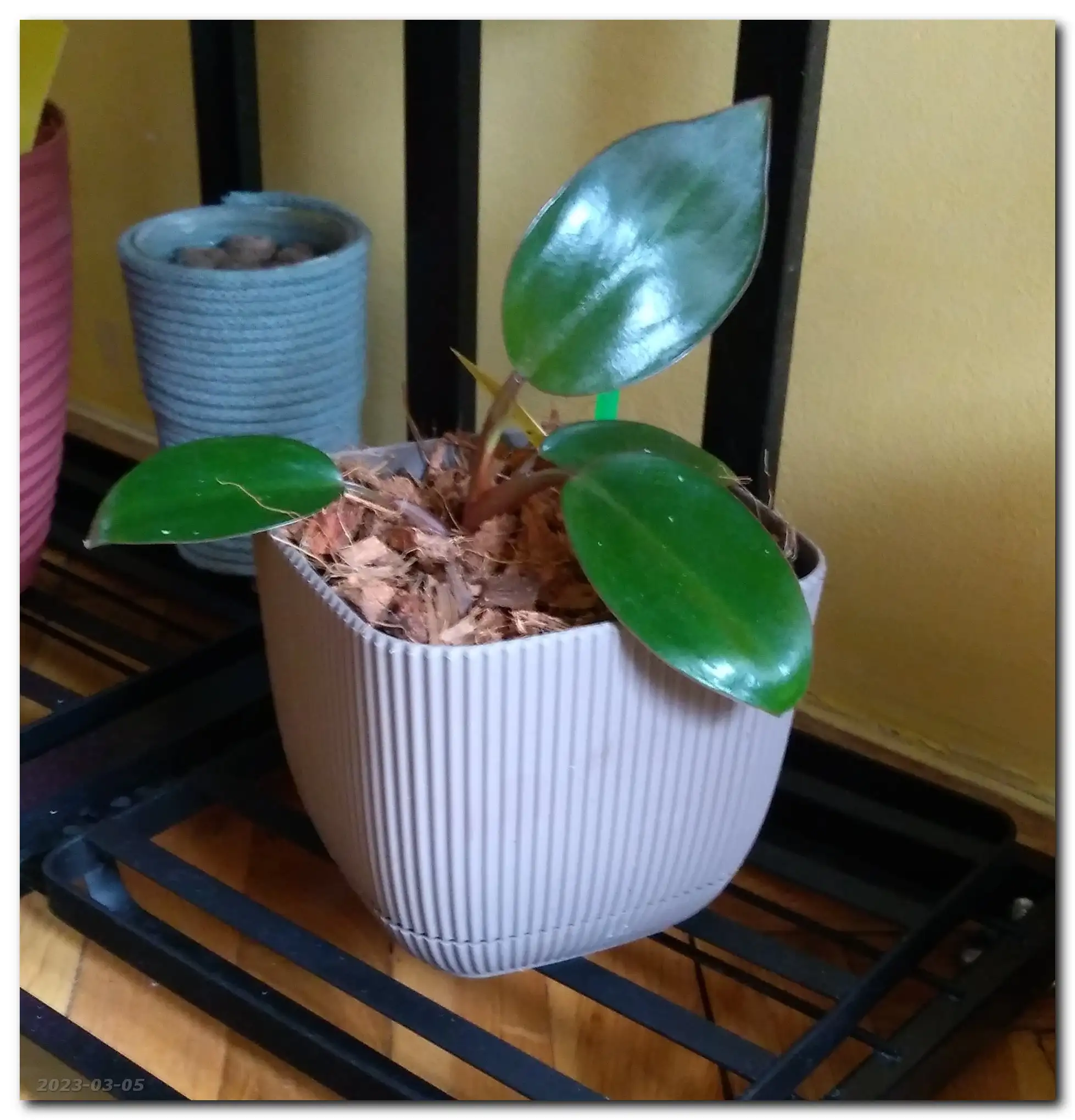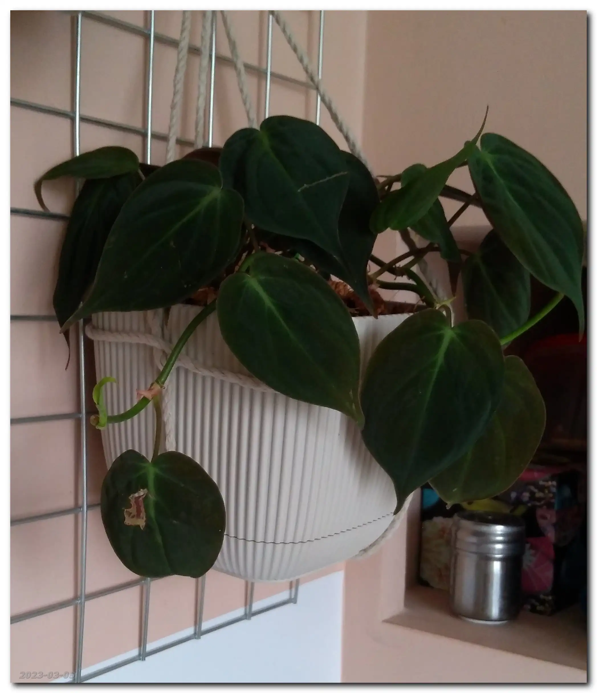 Hmmm... Miki (Philodendron Scandens Micans) puszcza dużo nowych liści. Roho (Philodendron Rojo Congo) i Miluś Junior (Philodendron Birkin) ociągają się z rozwinięciem nowych liści, a Miluś (Philodendron Birkin) rozbudował korzenie i próbuje wypuścić nowe liście.