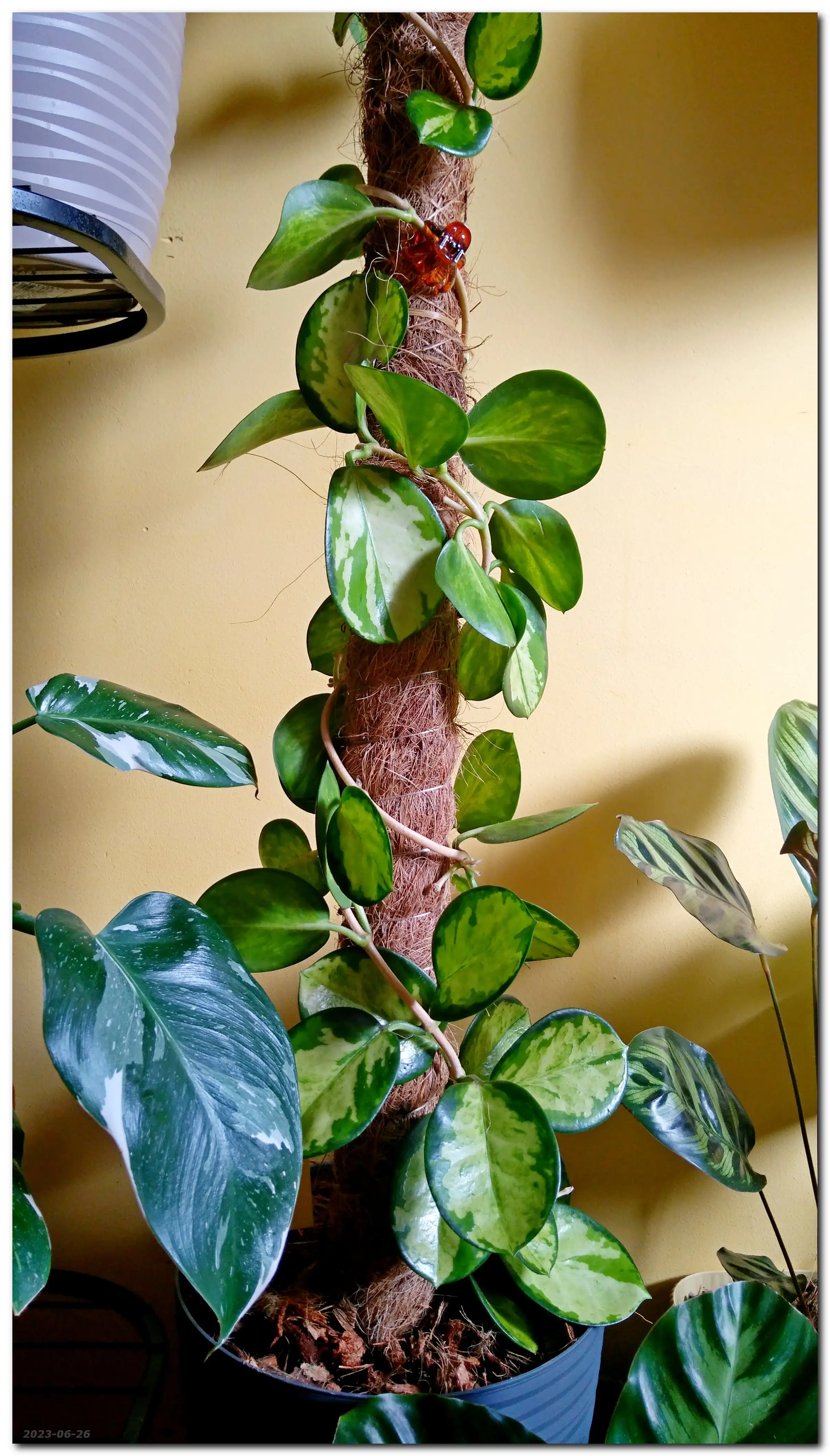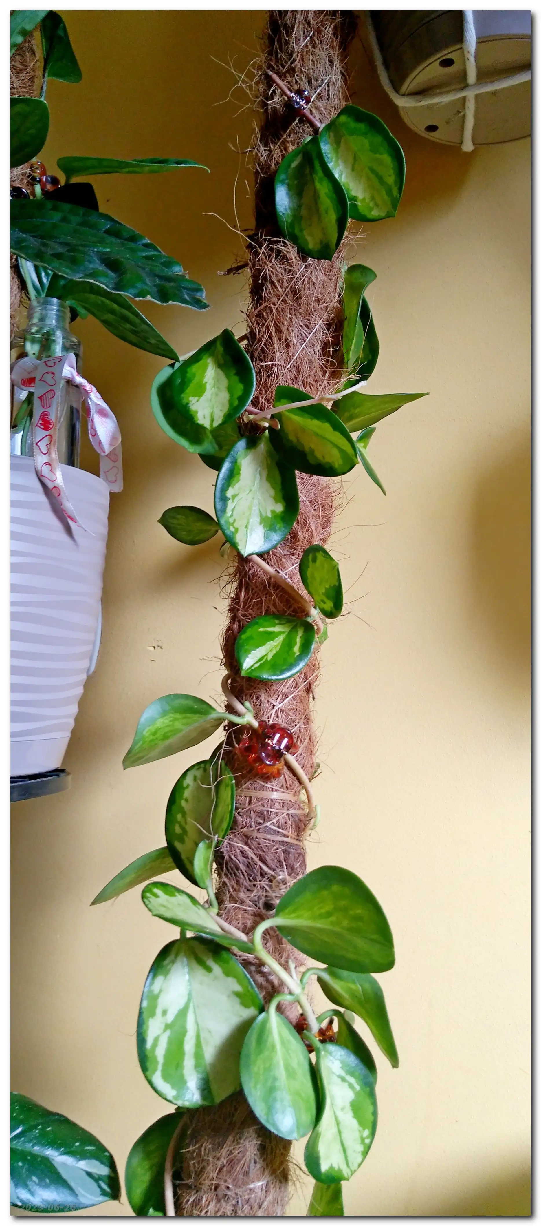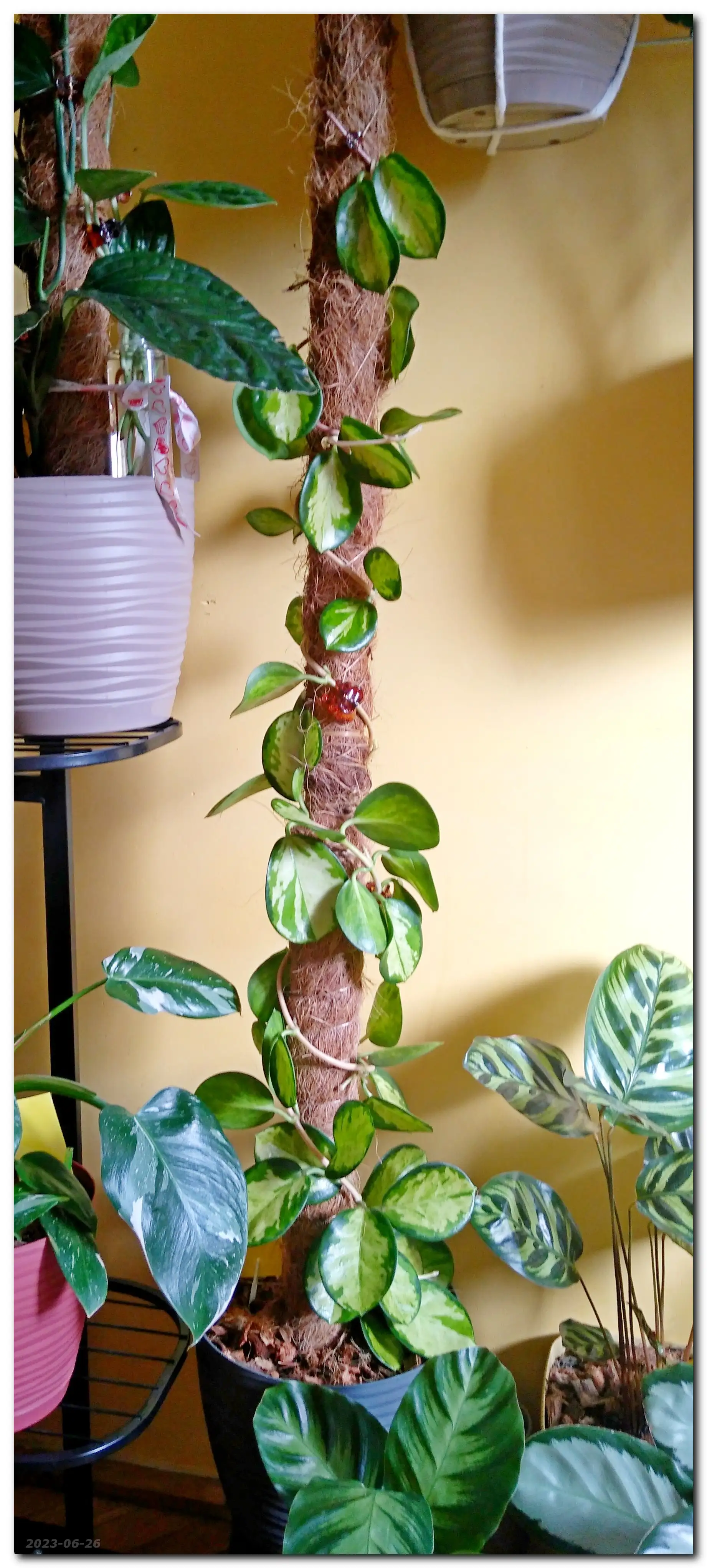 Nasza Hoya okazała się jednopędowa - dłuuuugo pędowa, więc ostatecznie dostała wydłużony palik kokosowy.