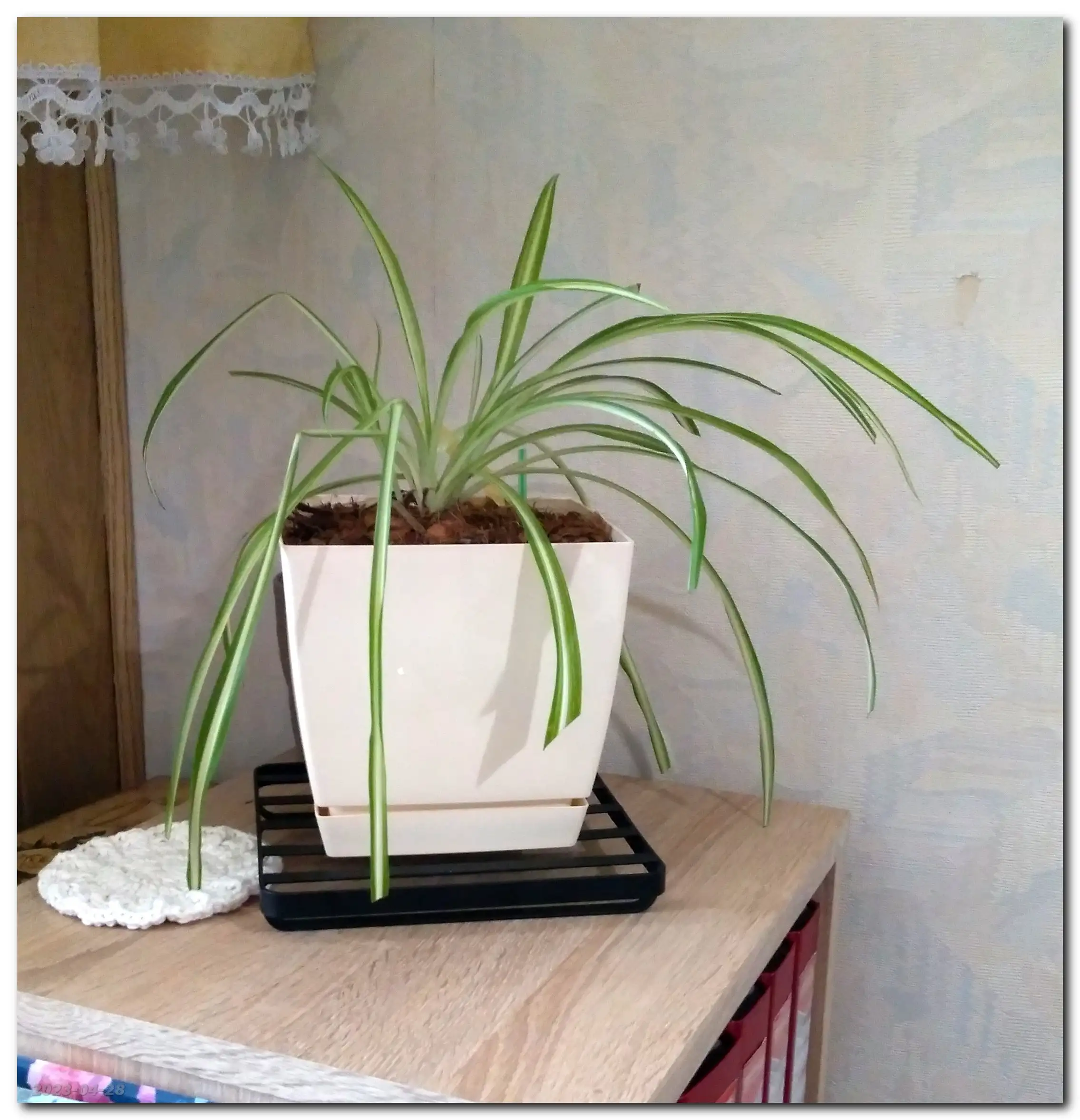 Wygląda na to, że po wełnowcu nie ma ani śladu, więc Królowa dołączyła do pozostałych pnączy na kratce kuchennej.