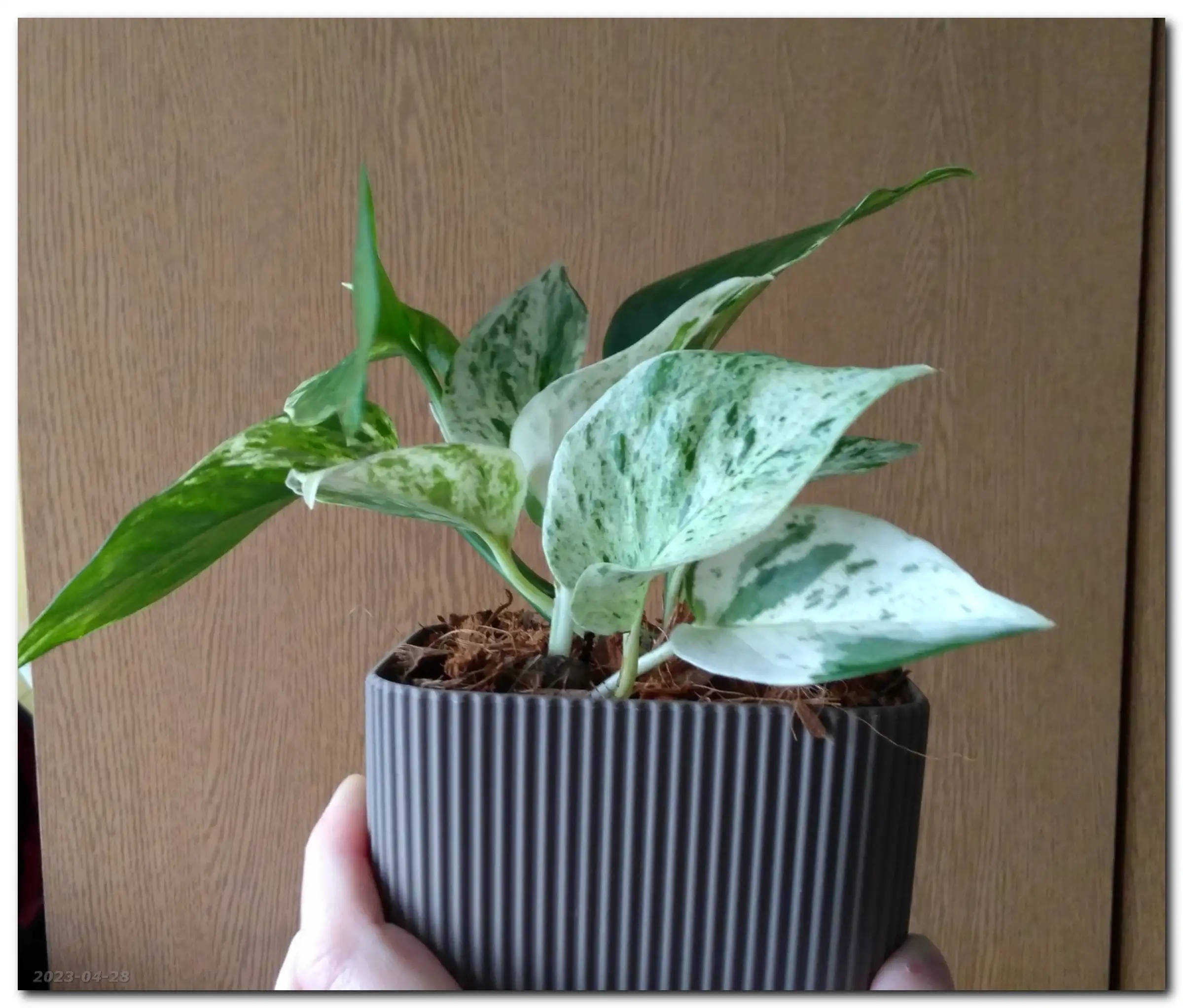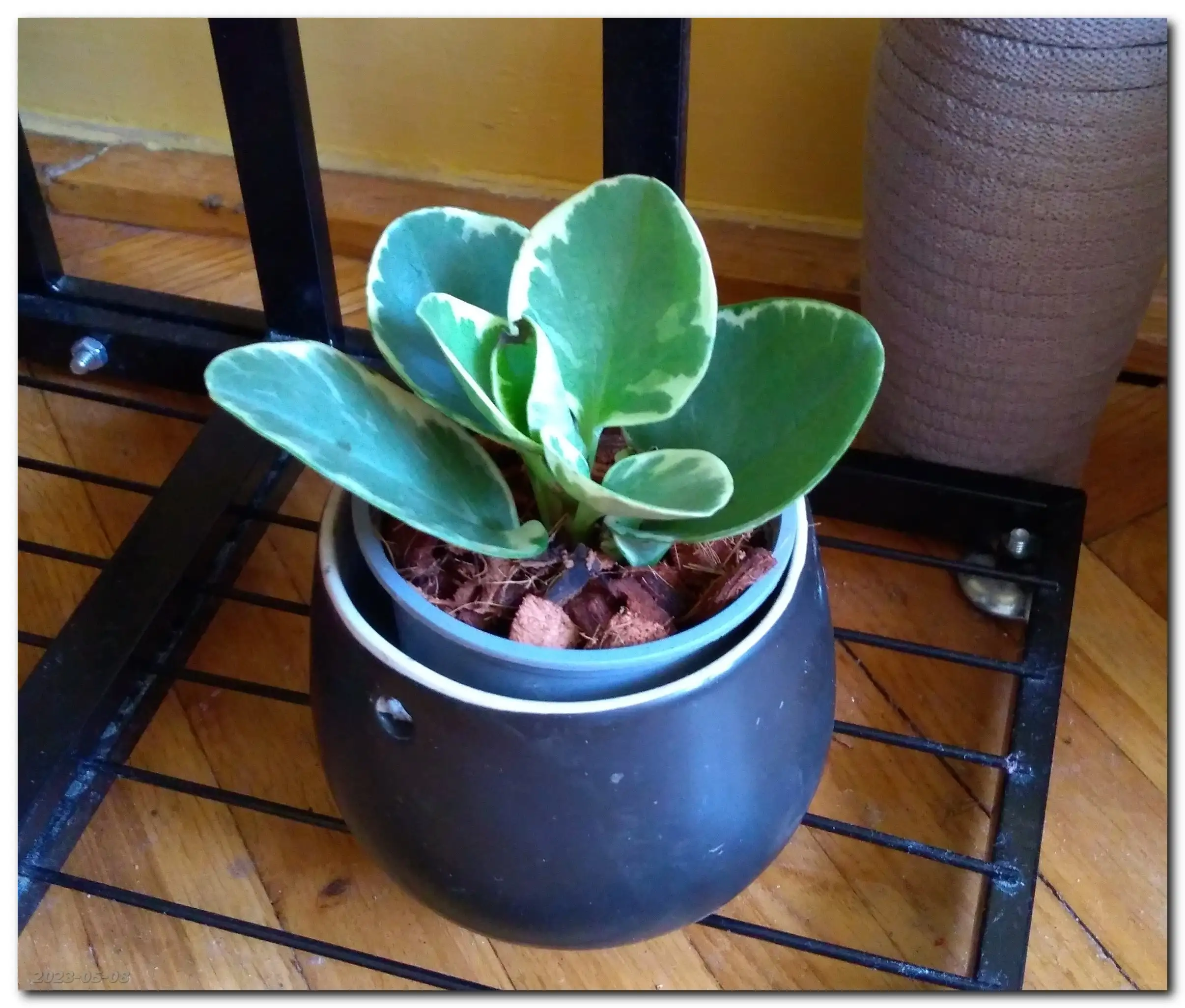 No i stało się. Jednak dałam drugą szansę Peperomi, tym razem również jest to Obtusifolia, ale Variegata. Zobaczymy, czy tym razem jej nie ukatrupię. (Tak na marginesie: kupiliśmy ją z jakimś dziwnym robactwem - długim i wijącym się, jakcieniutkie czarne niteczki - więc przeszła całkowitą kąpiel, zmianę podłoża i doniczki.)