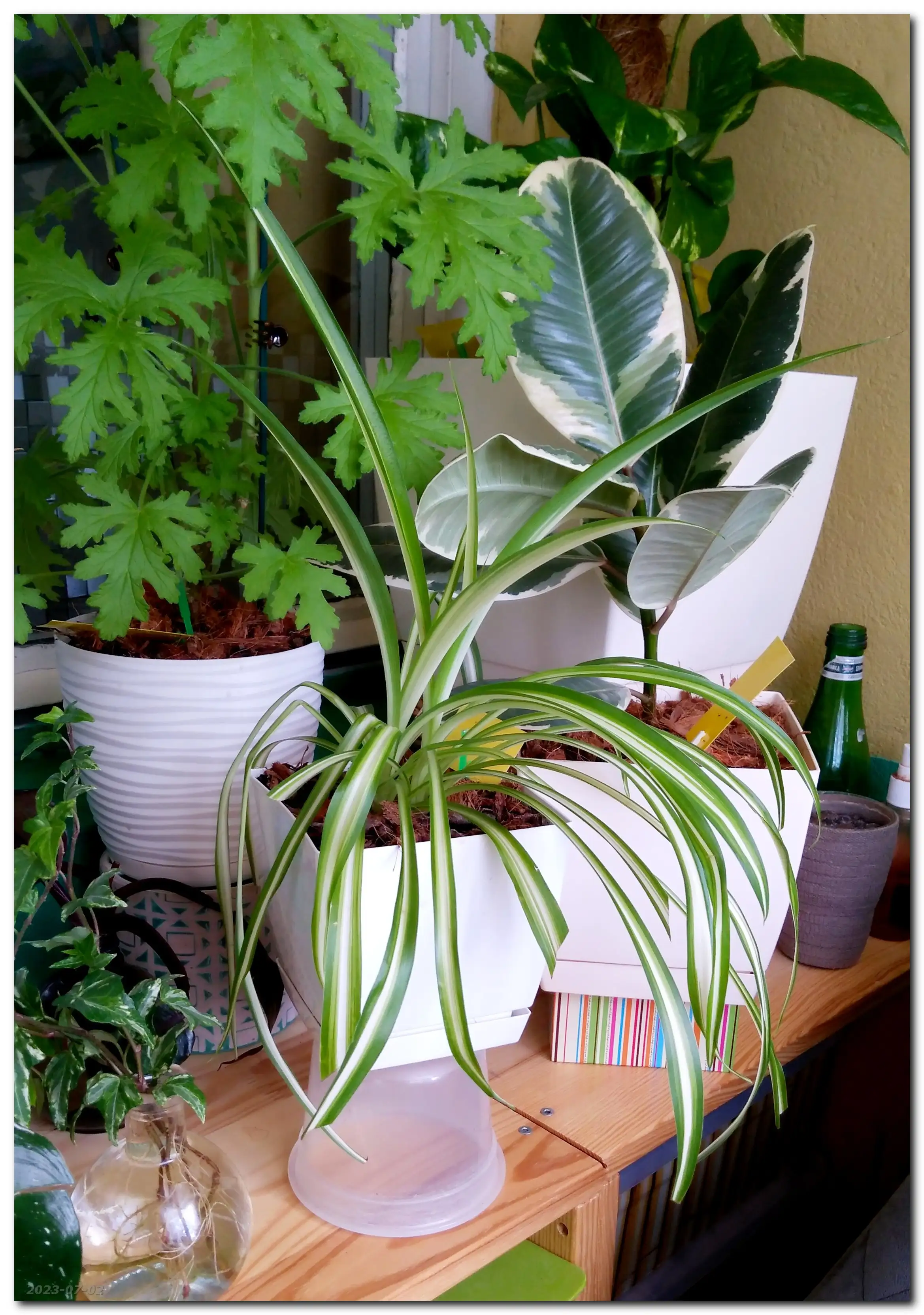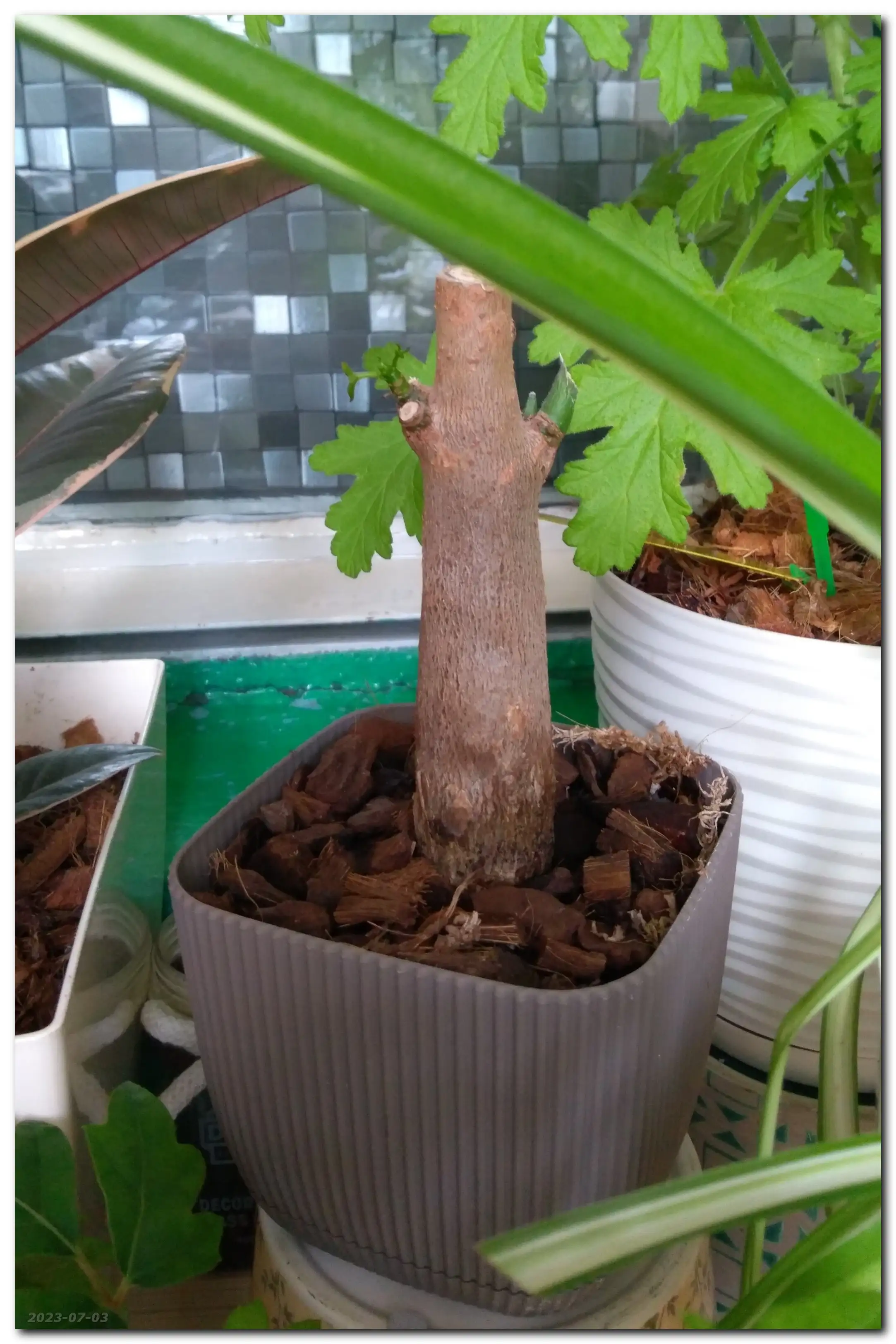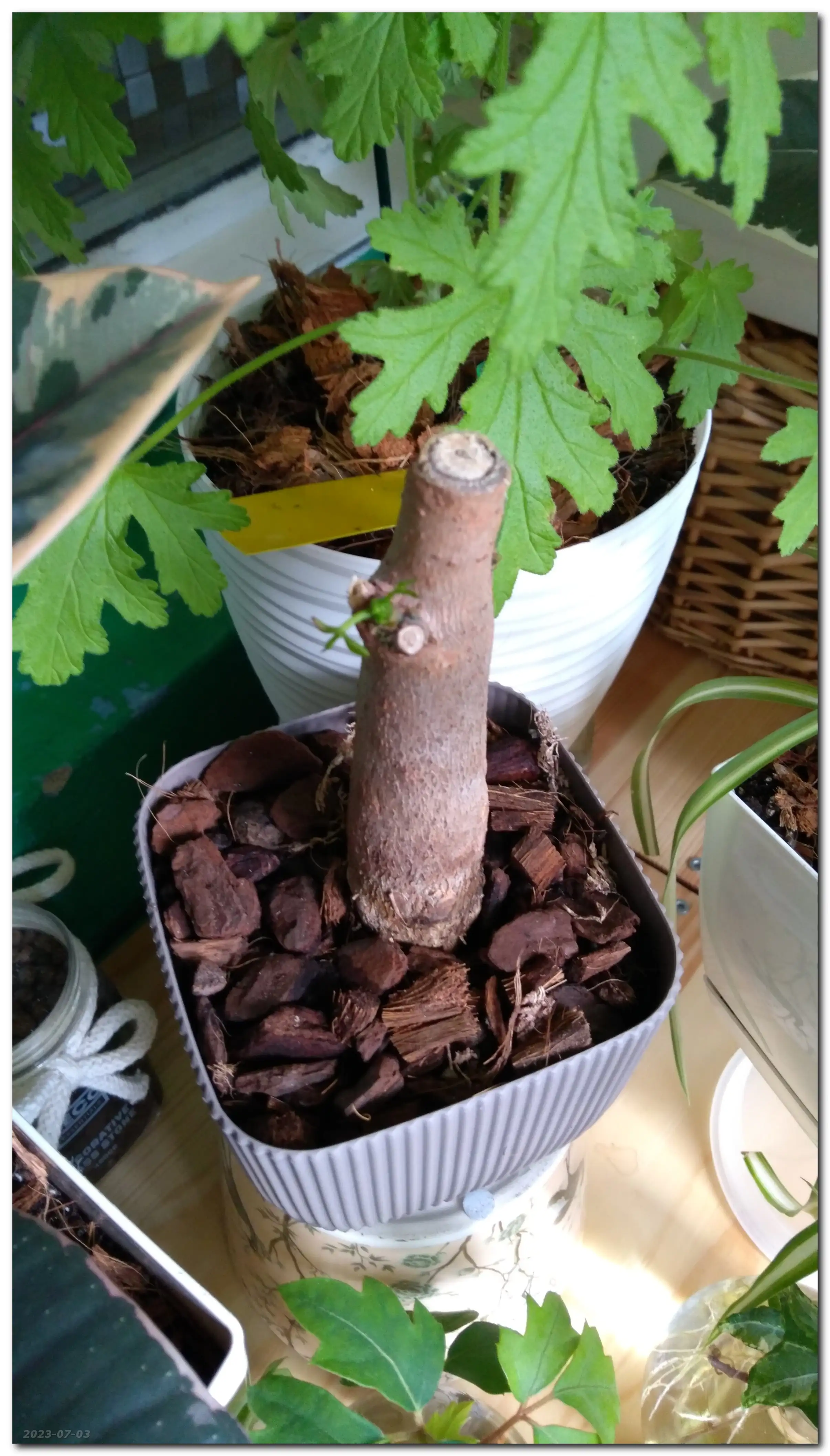 Drzewko jeszcze walczy. Jedną z młodszych gałęzi i próbuję ukorzenić w perlicie, a resztę przesadziłam do mniejszej doniczki - głównie do czipsu kokosowego, kory piniowej, spagnum i perlitu. Zobaczymy, co będzie z tego eksperymentu.