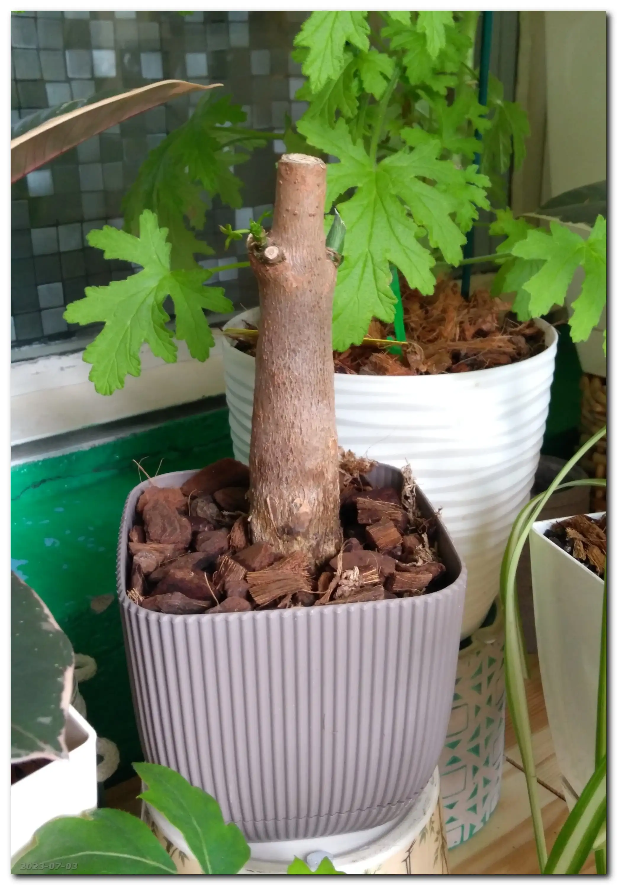 Peperka została przeniesiona na balkon, gdzie ma więcej słońca. No i chyba w końcu zaczyna wypuszczać nowe liście!